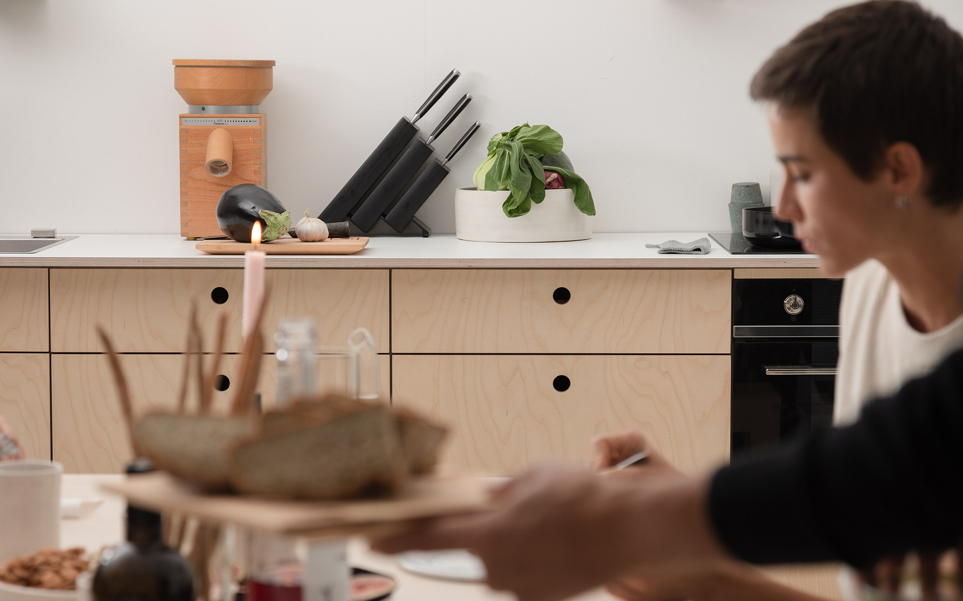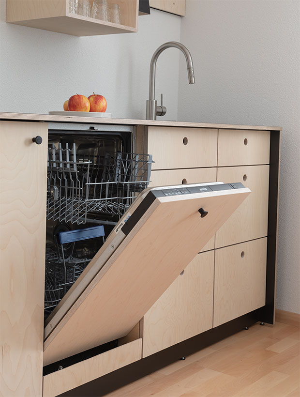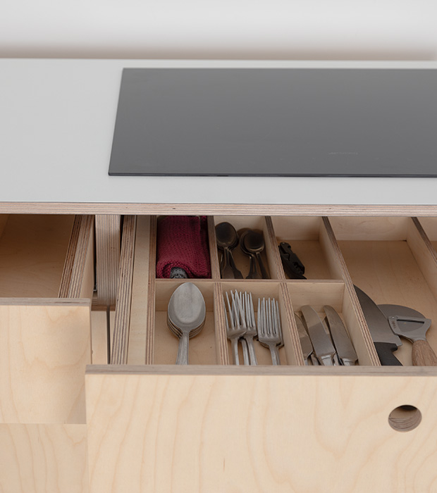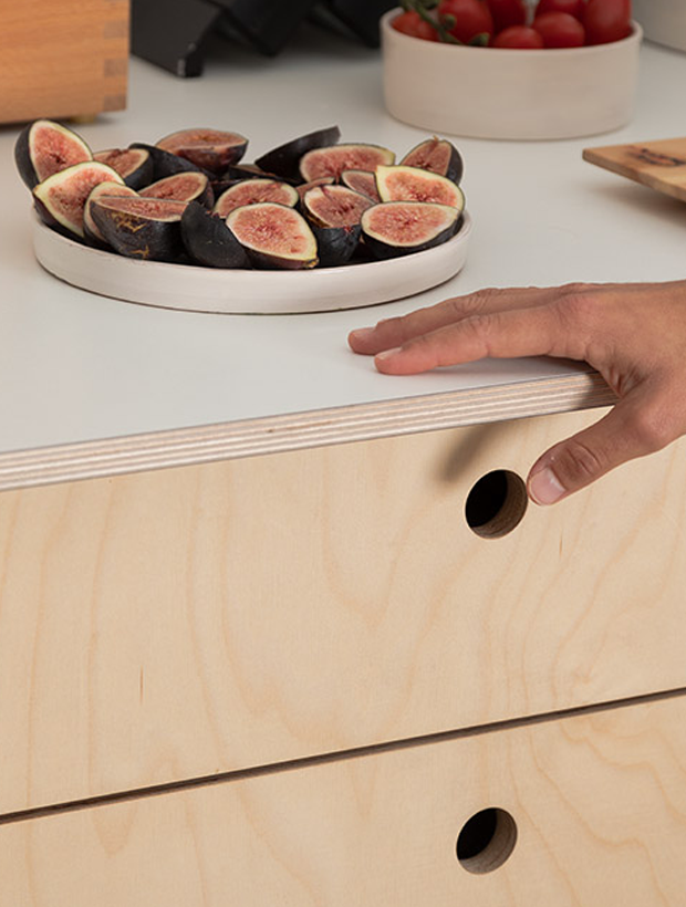 Bei Das ganze Leben verbinden wir höchste Ansprüche an Material und Verarbeitung mit nachhaltigem Design. Für unsere EVA Küche verwenden wir ausschließlich hochwertiges Birkensperrholz und 3-Schichtplatten aus regionalen Quellen, versehen mit sorgfältig ausgewählten HPL-Beschichtungen in einer kuratierten Farbpalette.